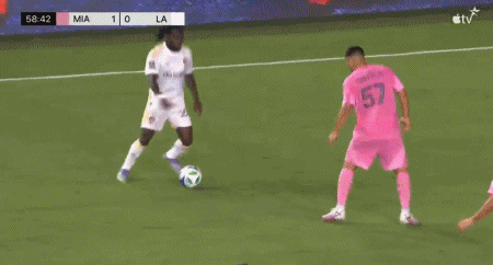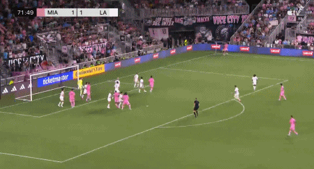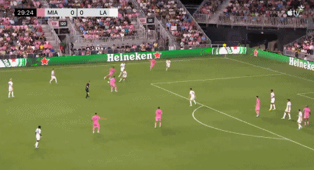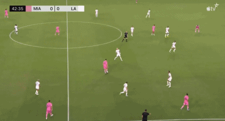 第43分钟,布斯克茨直塞,阿尔巴插上推射近角破门,迈阿密国际1-0