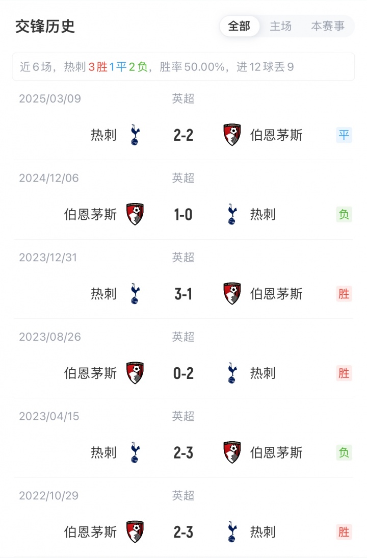 热刺新赛季开赛2战全胜位列英超第二,伯恩茅斯1胜1负暂列第9。